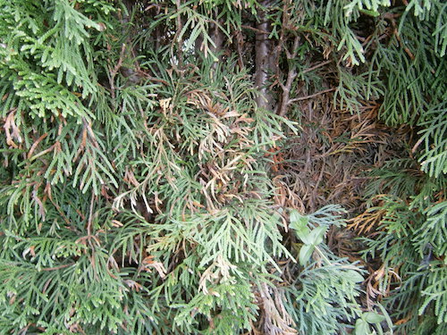 Das Innere der Thujen kann sich zum Herbst einbraunen