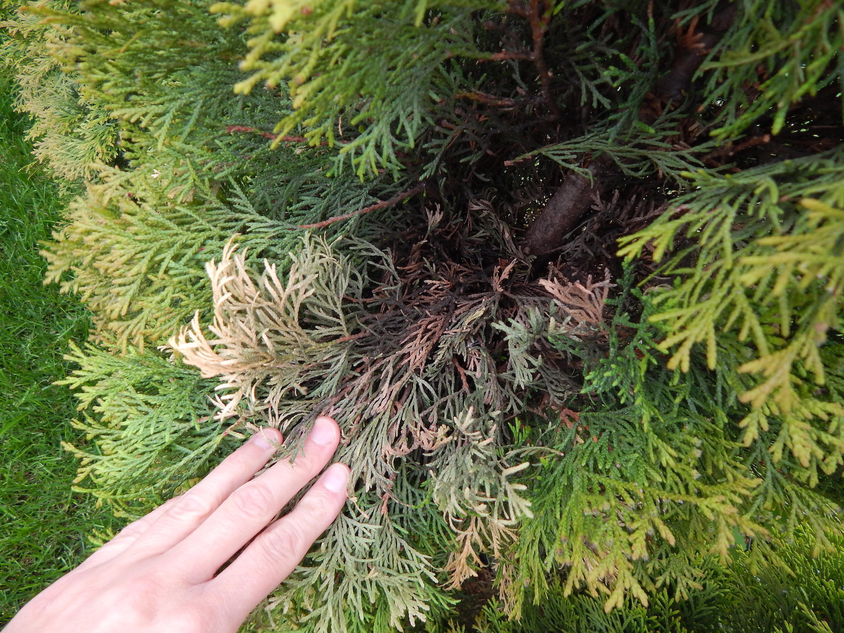 Das Innere der Thujen kann sich zum Herbst einbraunen. Der Grund dafür ist, dass die Zweige im Inneren der Pflanze kein Licht bekommen, und diese Zweige während des Herbsts absterben. Das ist ein ganz normaler Verlauf. Dessen Mass ist veränderlich, hängt von der Pflege, von dem Zeitabschnitt verlaufen seit der Pflanzung ab. Ferner ist es wahr, dass die Thujen immergrün sind, aber sie fallen ihre Sprösse in jedem dritten Jahr ab - so reproduzieren sie sich.Was zu tun ist: Wir können abwarten, dass sie auf natürlicher Weise während des Herbsts abfallen. In diesem Fall können wir die braunen Zweige im ganzen Herbst sehen. Wenn das Sie stört, dann können Sie sie auch mit Hand in Handschuhen entfernen. In jenem Fall, wenn sich das Innere sehr entblättert, nach der Entfernung, in manchem Fall leer und in manchem Platz durch die Pflanzen sehen kann, in diesem Fall kann es wertwürdig sein, abzuwarten, dass sie von sich selbst abfallen.